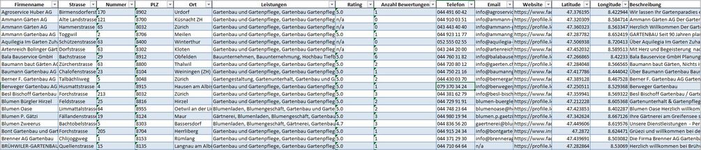 Liste von 5.850 Schweizer Gartenbau-Betrieben 2024 mit zahlreichen Attributen und sofort verfügbarer Liste als Excel-Datei.